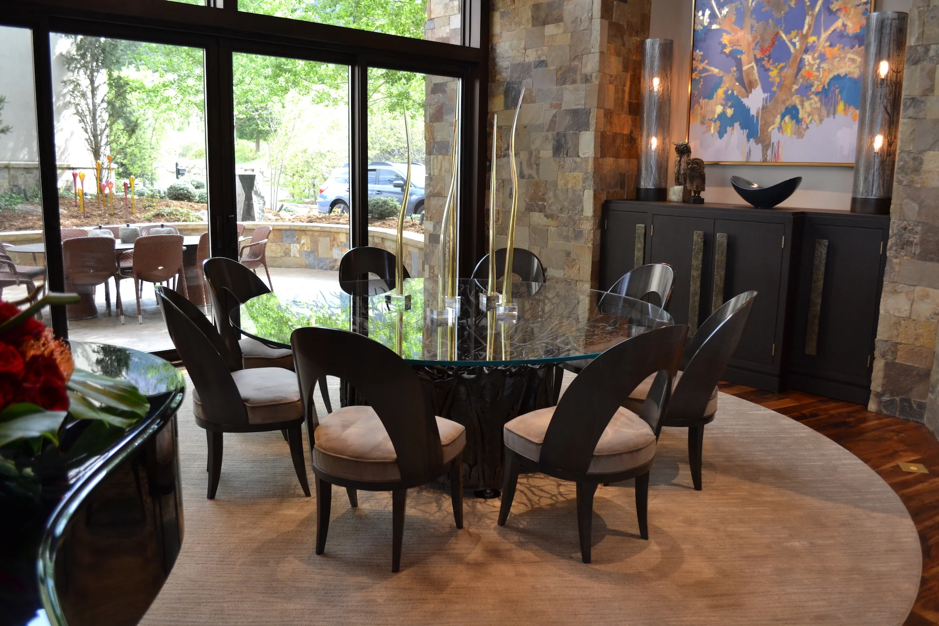modern wrought-iron style metal and glass art, sculpture, and custom decor